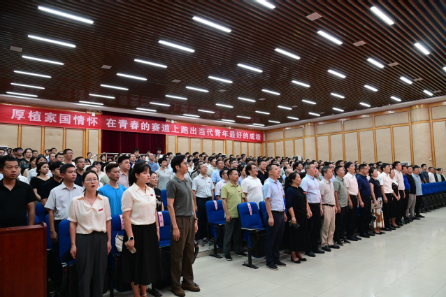 本站讯(学生记者 谌妤 记者 袁璐)金秋送爽,桃李芬芳。9月10日下午,宜春学院在教学主楼学术报告厅召开第41个教师节庆祝大会,以“以教育家精神铸魂强师,谱写教育强国建设华章”为主题,表彰先进典型、凝聚奋进力量,激励全校教职工勇担教育强国使命,推动学校高质量发展。全体校领导、副处级以上干部、师生代表等近400人齐聚一堂,共庆节日。荣获2024年度江西省科技进步二等奖的团队负责人林超博士、带领“医学美学”课程团队荣获2025年度国家级一流本科课程的周金娟老师和校领导在主席台就座。会议由校党委副书记、校长蔡海生主持。