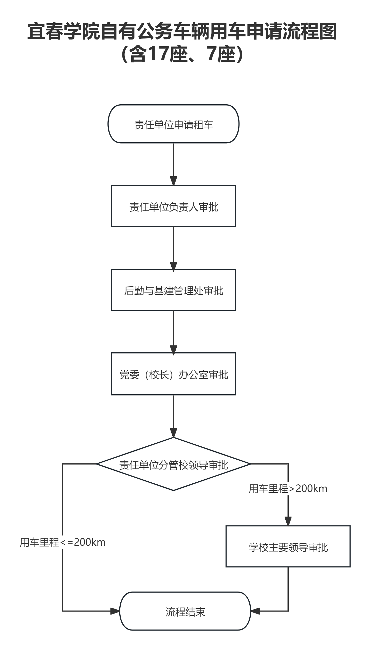 宜春学院自有公务车辆申请流程图(含17座、7座)