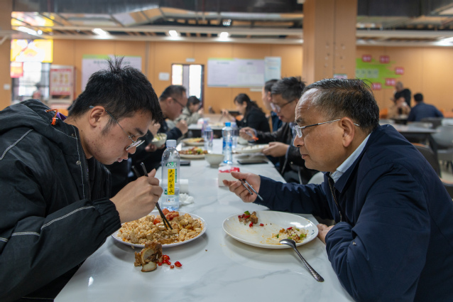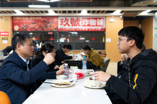随后,校领导在食堂就餐区与同学们面对面交流、共同就餐,实地体验餐食质量、菜品口味、价格水平和就餐环境,认真倾听学生对食堂服务、菜品供应、营养搭配等方面的意见建议,现场回应学生关切。